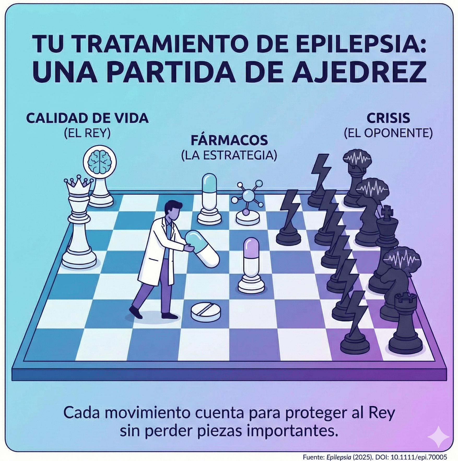 La analogía del ajedrez: Epilepsy treatment over time: The chess game analogy for choosing, adjusting, and adding antiseizure medications. (Epilepsia, 2025). DOI: 10.1111/epi.70005.